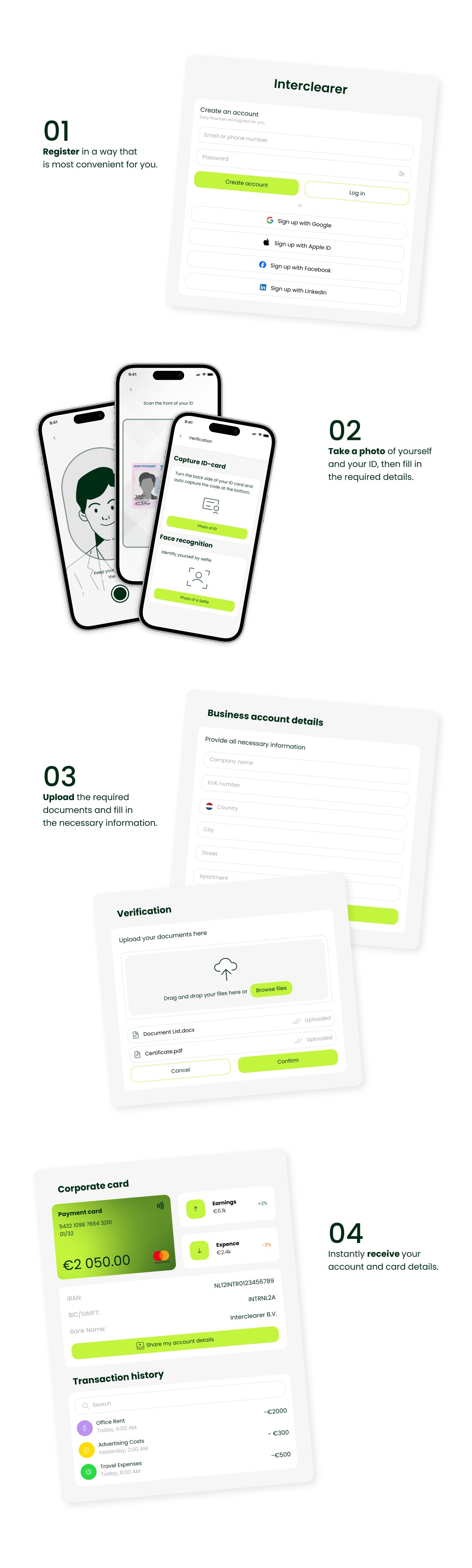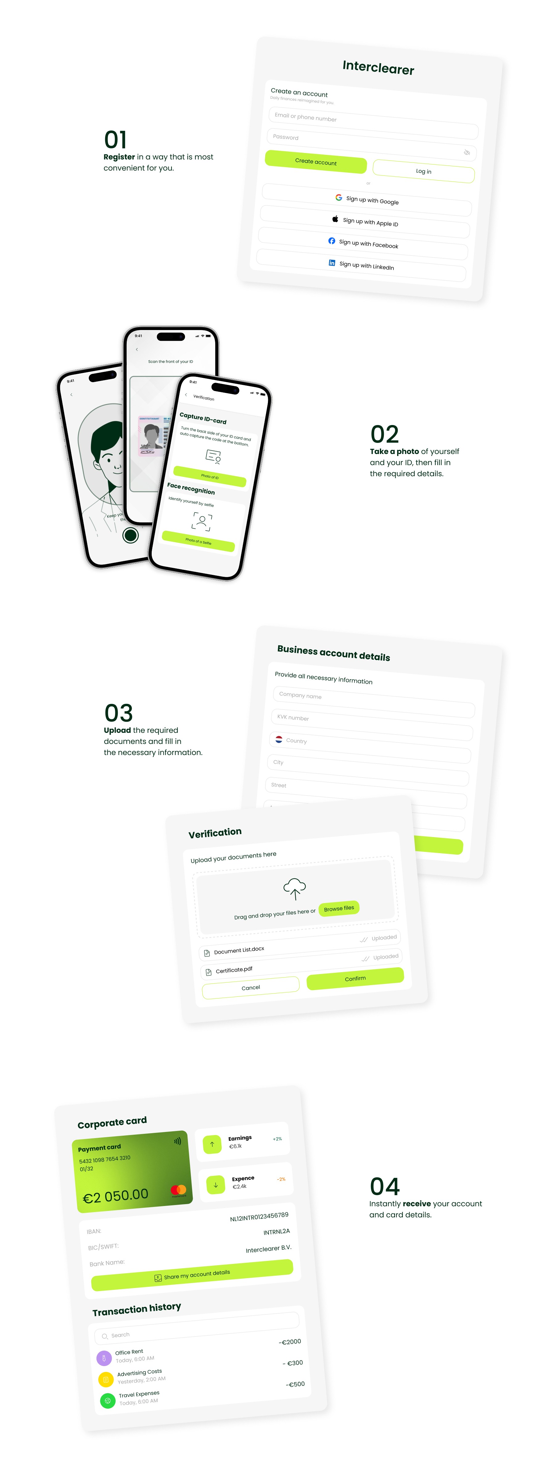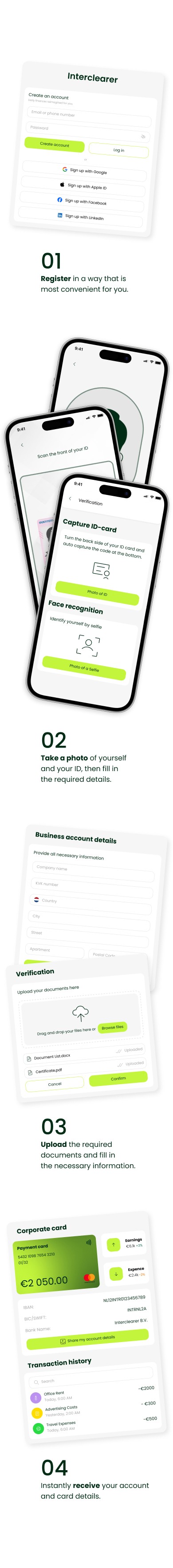 A unique business IBAN account and the option to issue a corporate payment card for company expenses.